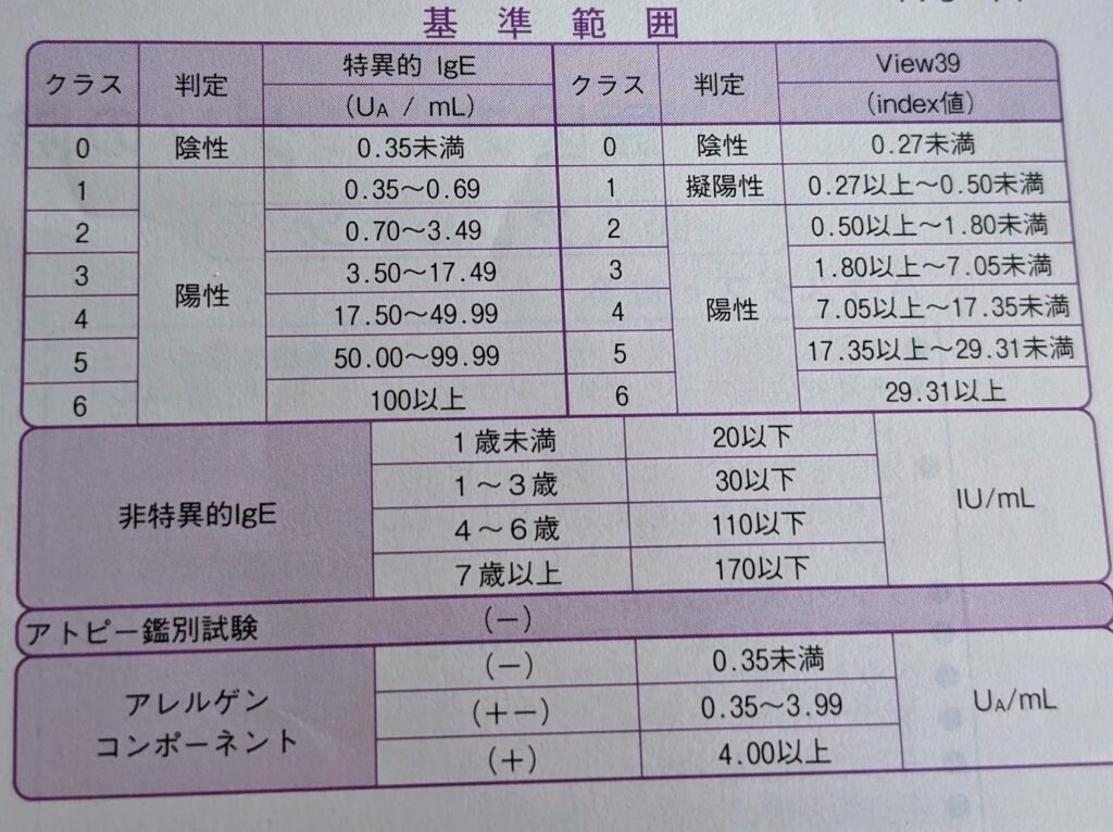 今回の検査では、血液検査でわかる検査で、血中のIgE抗体の量を測定することで、アレルギーの原因物質(アレルゲン)を特定できる検査となります。