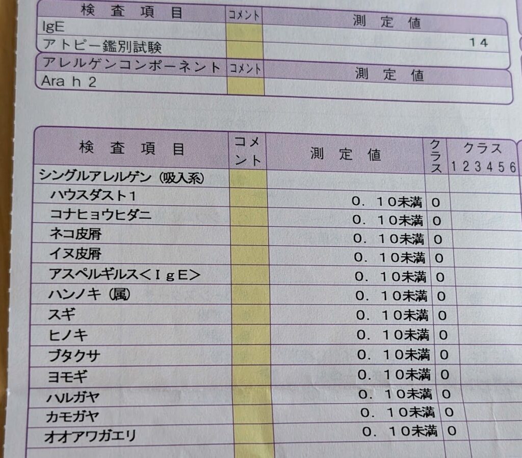 すると、びっくりしたことに、検査結果では、すべてのアレルゲンのアレルギー反応が0だったのです。