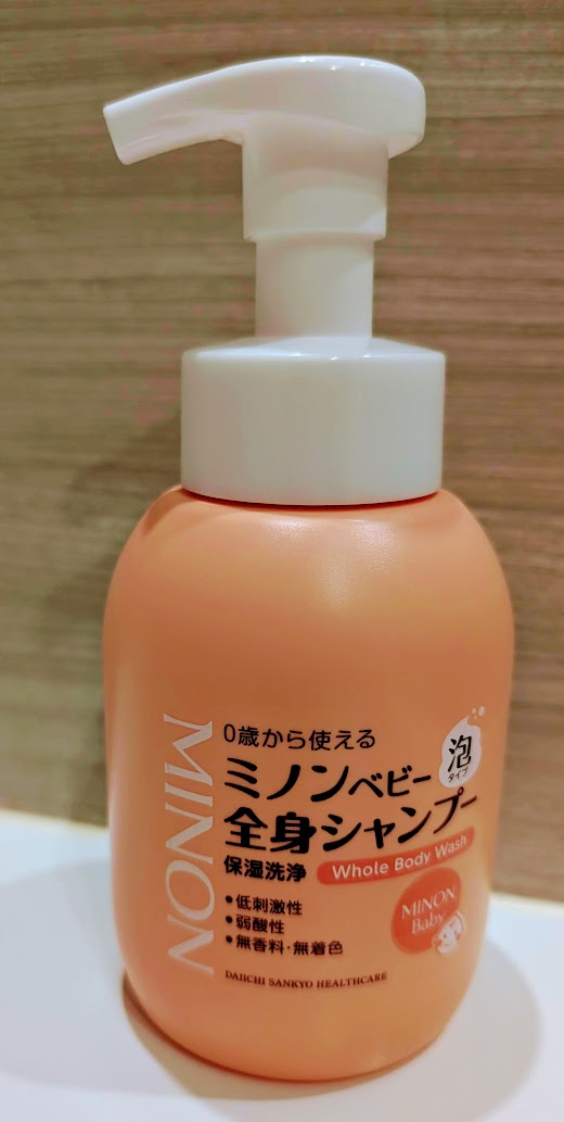 我が子は、生まれて家に来た日から、ずーーーっと「ミノンベビー全身シャンプー」を使っています。