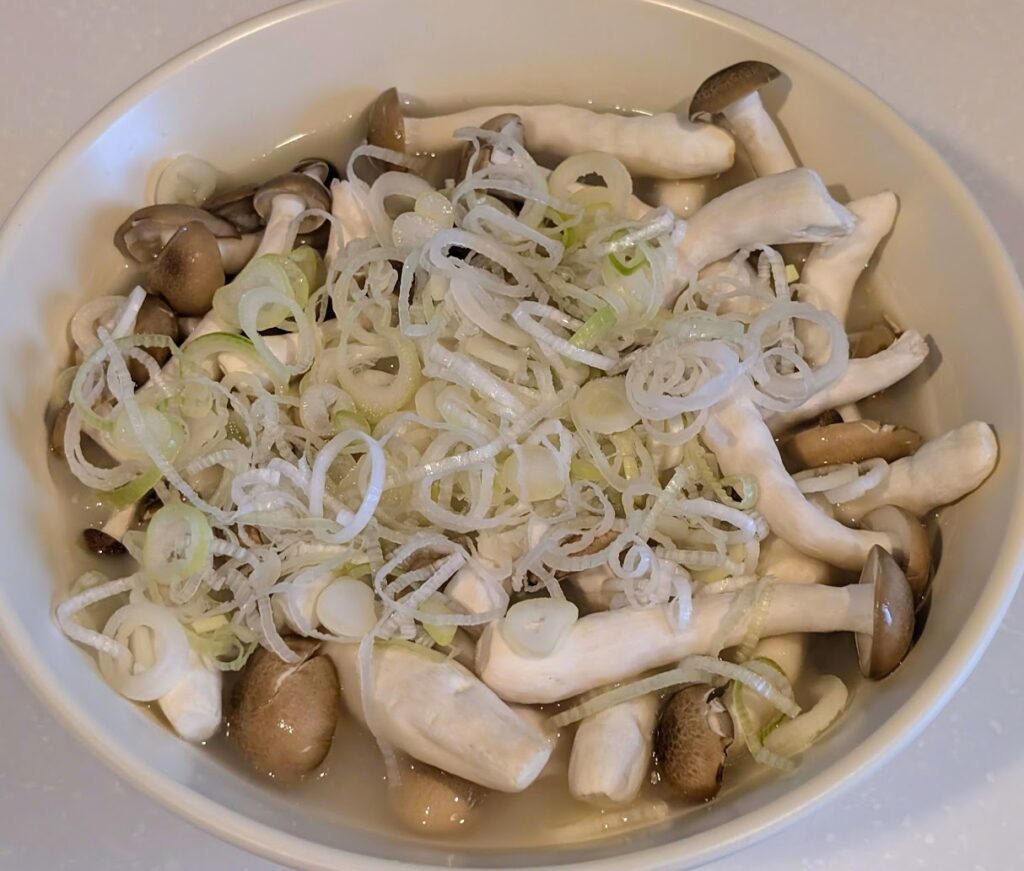 私は包丁を使うのすら面倒だったので、カットぶなしめじと刻みネギを使いました。