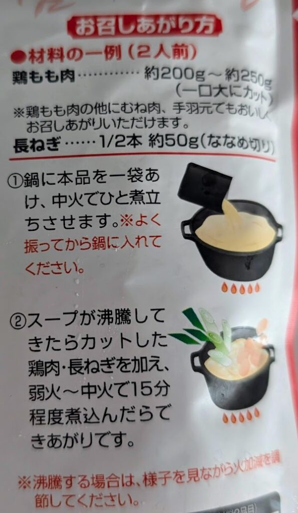 もうスープは出来上がっているので、これに材料を入れて煮るだけでできちゃうスグレモノです。