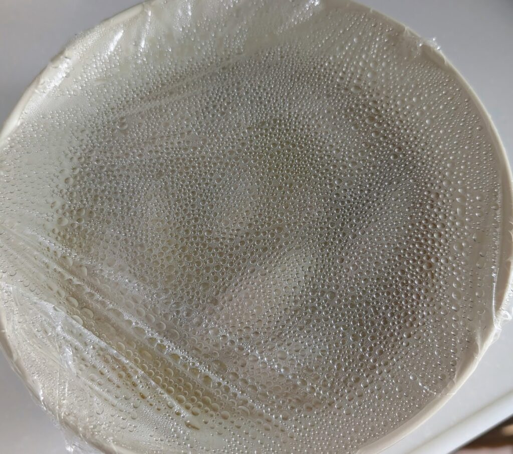 2.ふんわりラップして電子レンジ500Wで5分温める