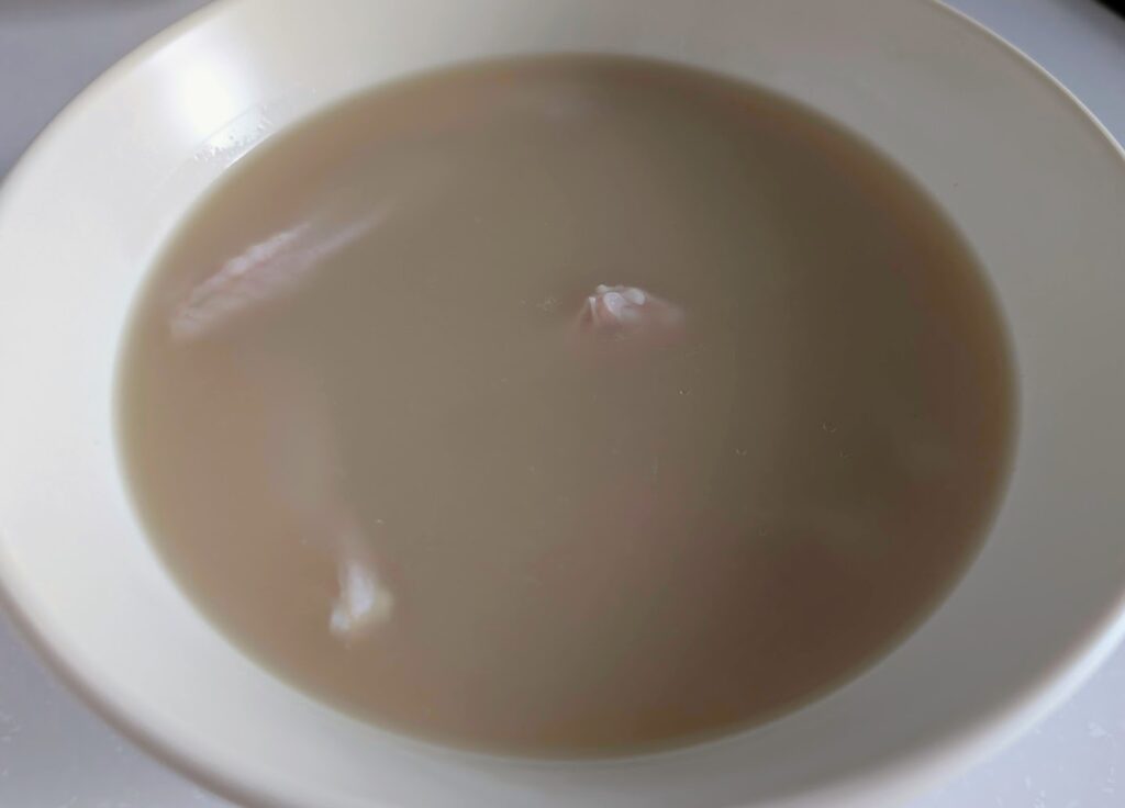 1.電子レンジOKのお皿にサムゲタンスープを入れる