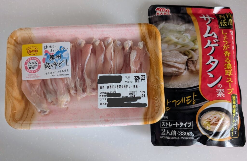今回使ったのは、「丸大食品 サムゲタン用スープ」です。