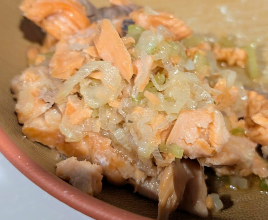 「鮭の酒蒸し 鍋のつゆの素あえ」です。