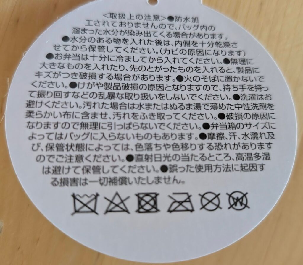 お弁当から汁がこぼれたり、汗をかいて汚れたりしても洗濯はできませんん。
