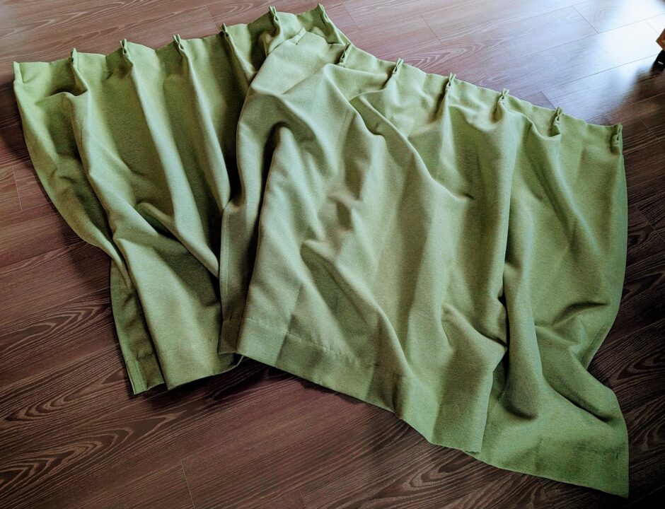 それで結果、カーテンにシワはできますし、もしかしたらちょっと縮んでいるのかもしれませんが、カーテンとしての役割はちゃんと果たせているので、我が家はこれでいいということにしました。