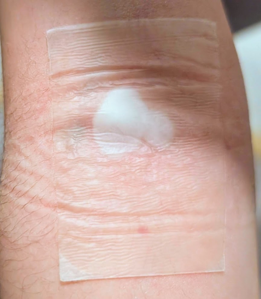 傷がなくなった場合、体液が出ていないのでハイドロコロイドを貼っても白くなりません。