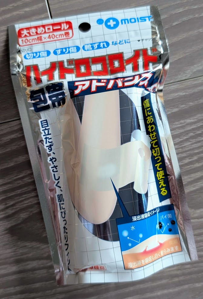我が家では、「プラスモイスト ハイドロコロイド包帯 アドバンス」を使っています。