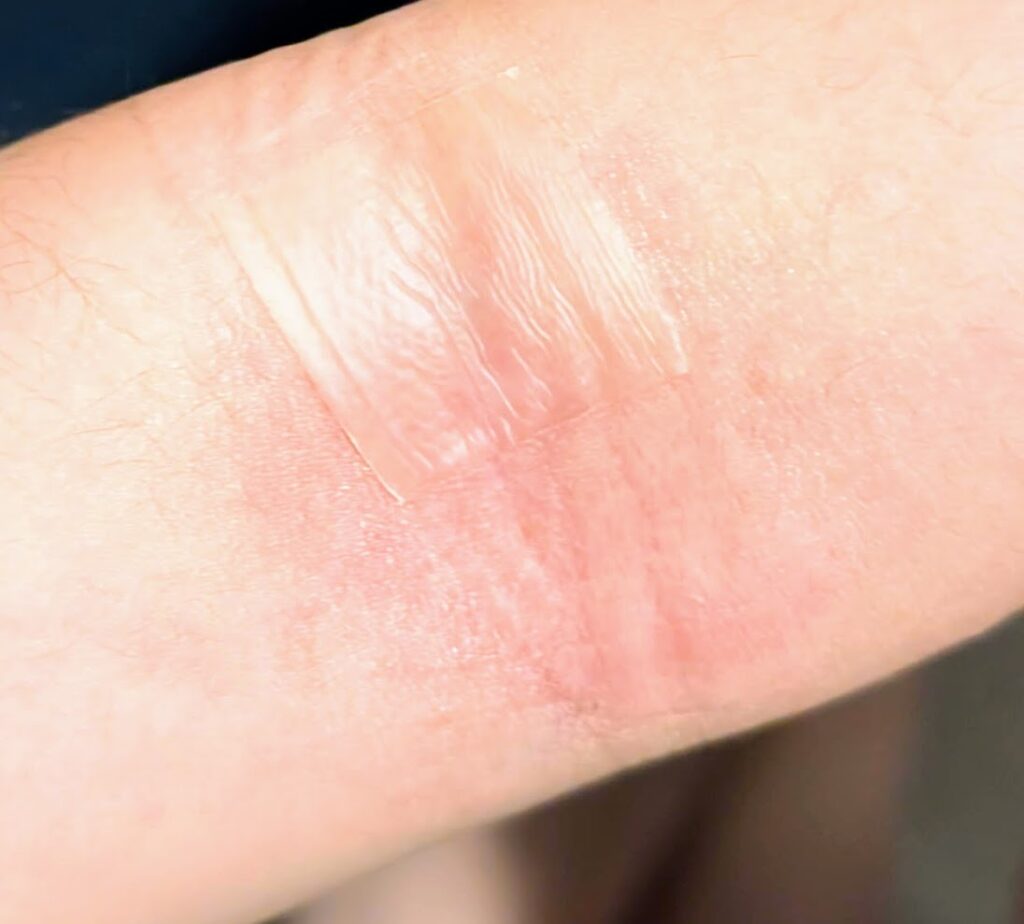 傷は切れているので傷みが少なからずあるのですが、このハイドロコロイドを貼っておくと傷みが感じられなくなる事が多いです。