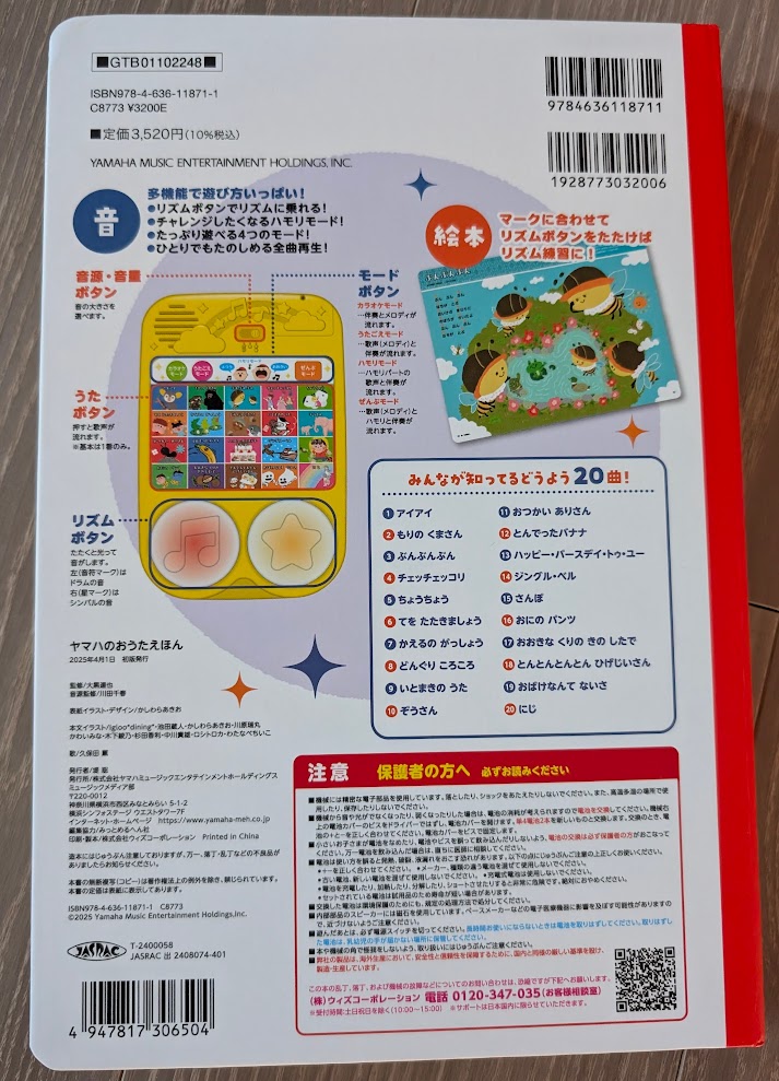 我が子が大ヒットしているのは、「ヤマハのおうたえほん」です。