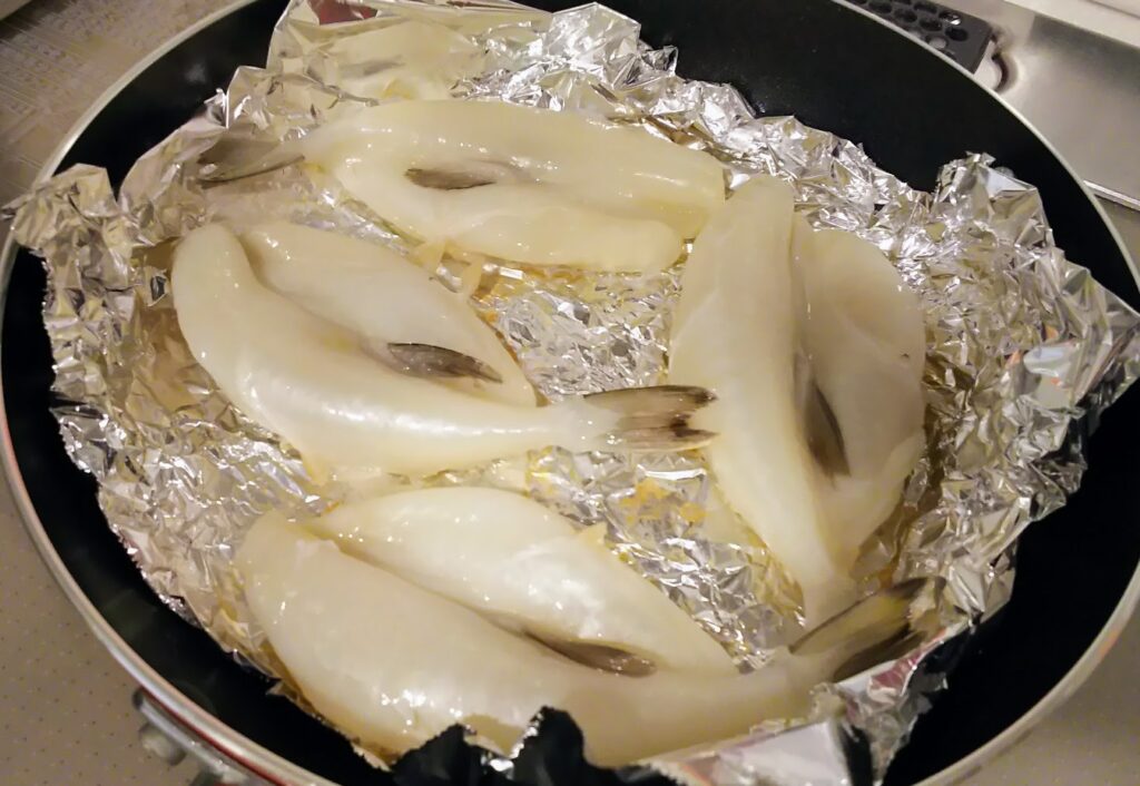 当時は普通のアルミホイルを使っていましたが、今だったらちゃんとフライパン用のアルミホイルを使うと思います。