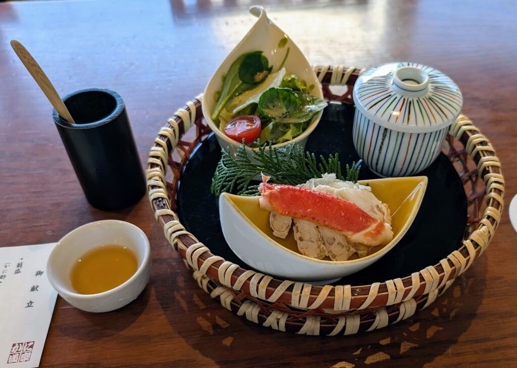 茹でかに、カニ酢です。