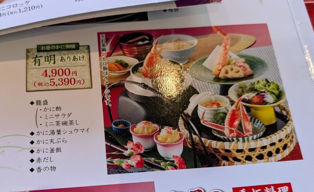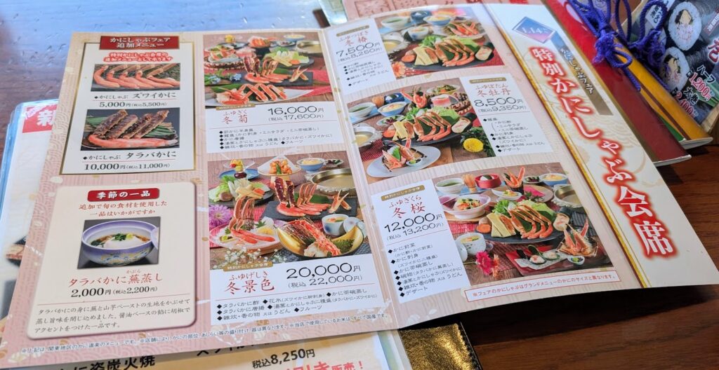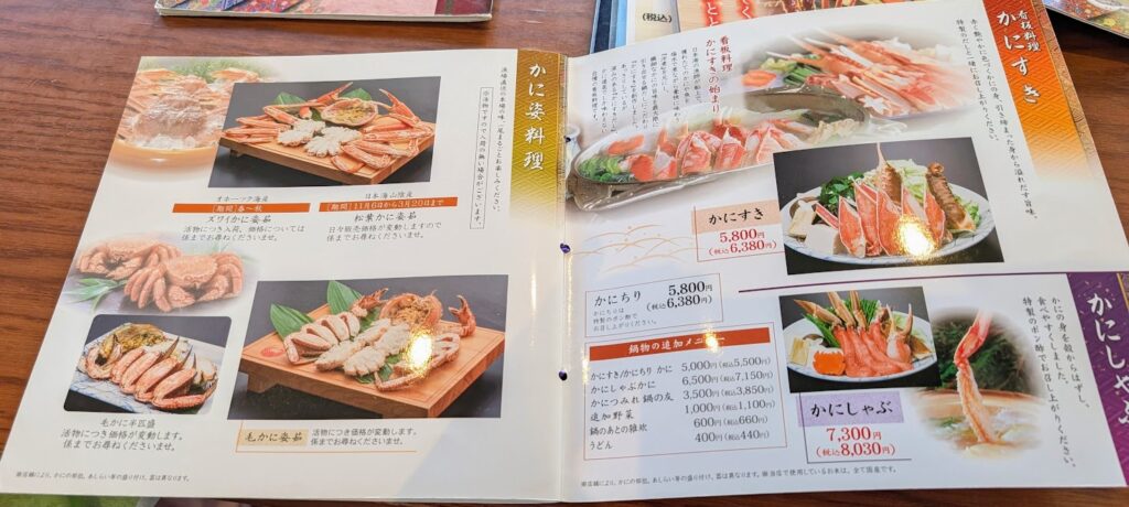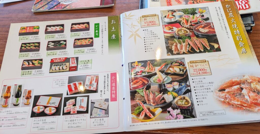 かに道楽に入ってびっくりしたのが、メニューの豊富さ。