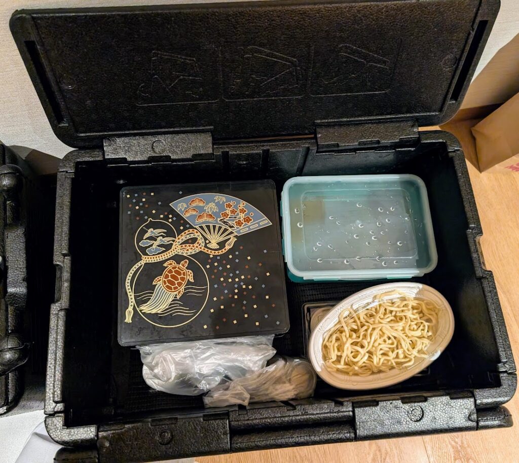 食べ終わったら、しっかり洗わなくていいっぽかったので、臭いが出ないように軽く水洗いだけして、そのままあったように箱にしまって、翌日に返却となります。