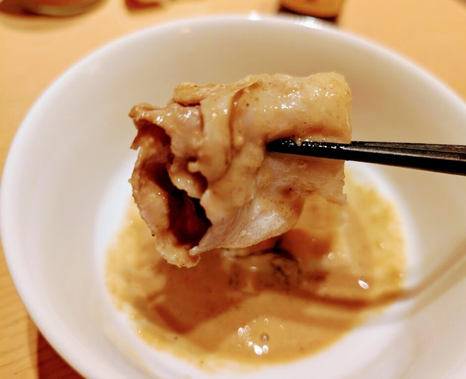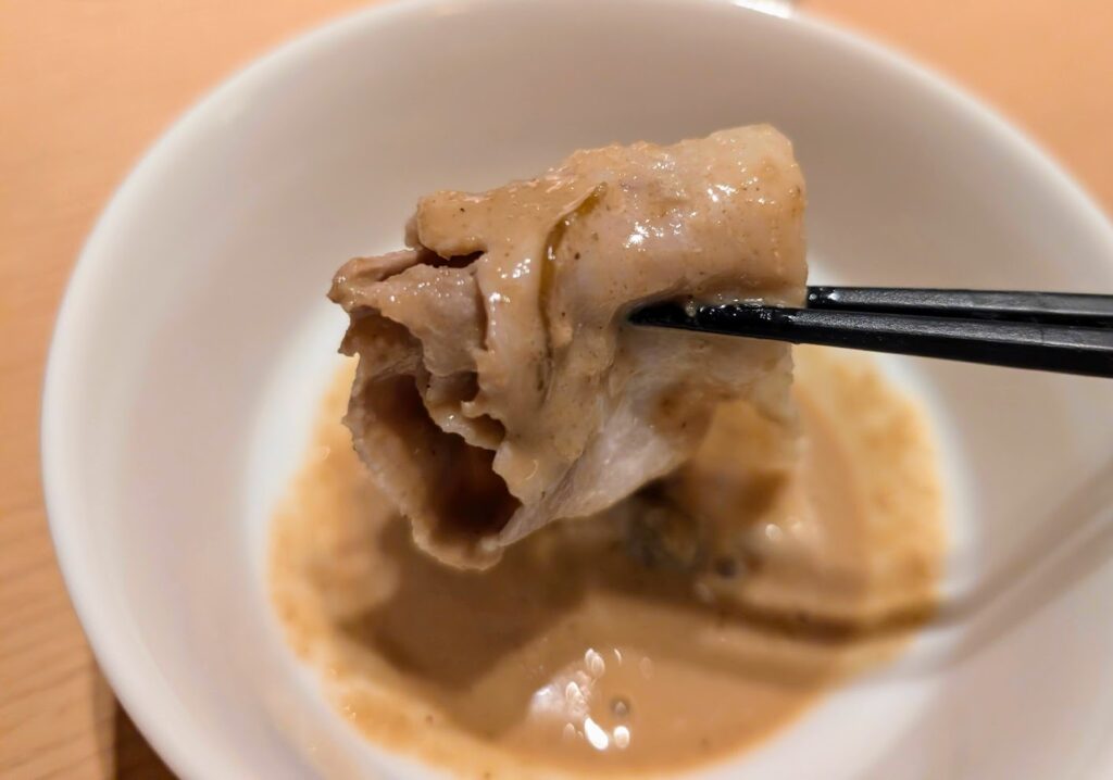 前回、ゴマダレが足りなかったので、多めにと頼んだら、2つ入れてくれました。