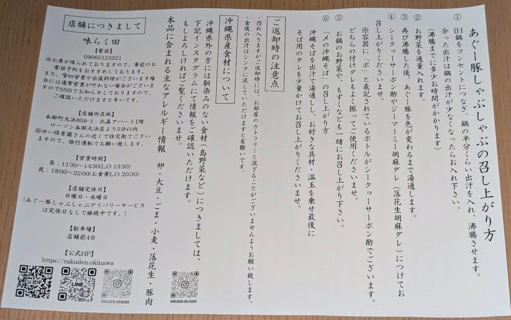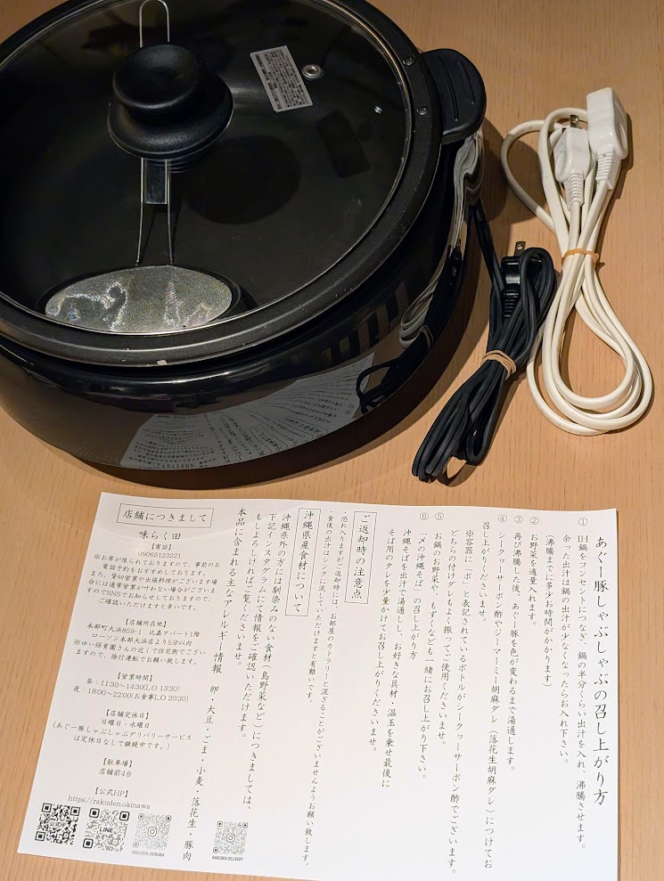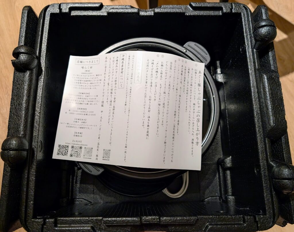 デリバリーサービスも行っていて、お部屋で美味しいあぐー豚しゃぶを食べることができます。