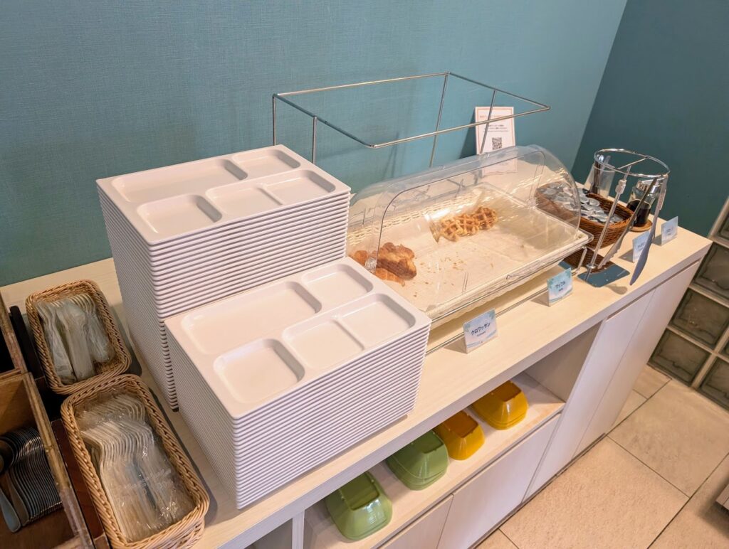 入口は食器類とパン、ドリンク