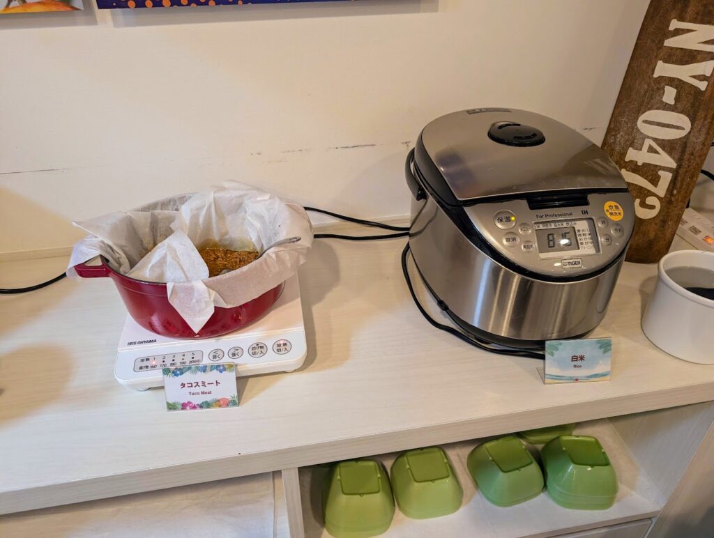 白米とタコスミートもあります。