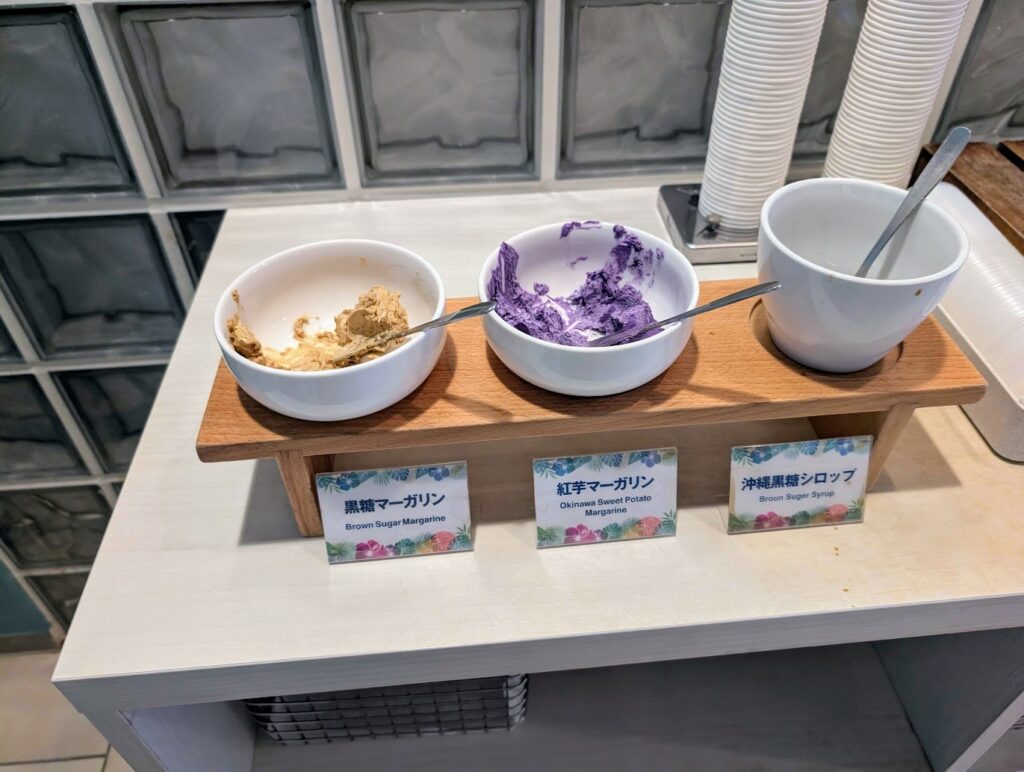 パンの横には名物?の紅芋マーガリンと黒糖マーガリン。