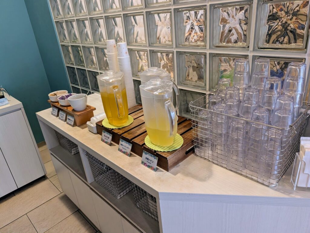 ドリンクは、さんぴん茶やシークァーサージュース、沖縄パインなどがありました。