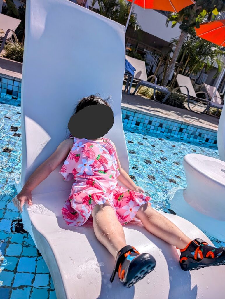 ということで、念願のプールで浮いて遊べて大変満足した我が子でした。