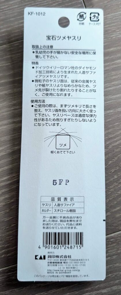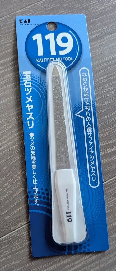 購入した爪やすりは、貝印の「119 宝石ツメヤスリ」という爪やすりです。