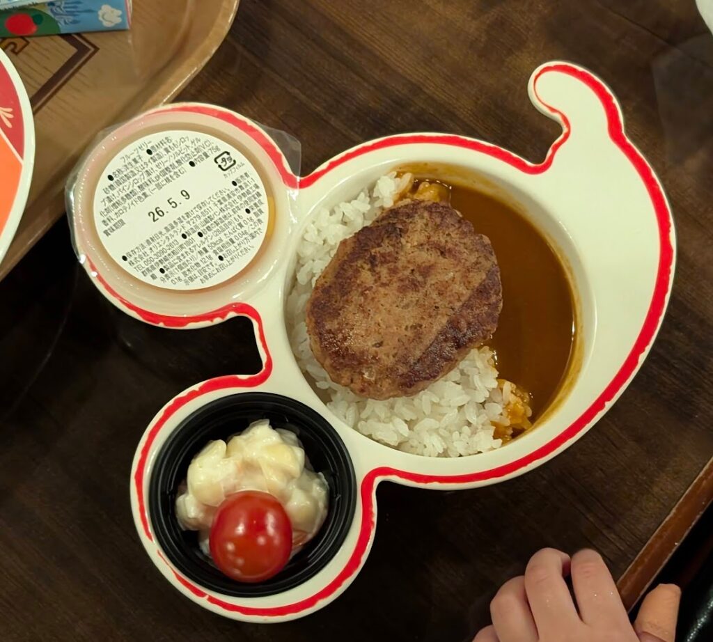 ハンバーグのソースはケチャップベース、ケチャップライスなので、ケチャップ苦手な我が子はちょっと食べにくかったようです。