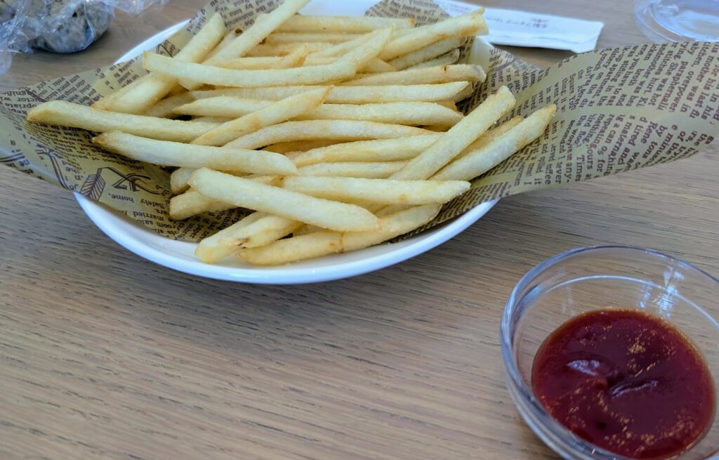 ポテトフライは揚げたてで美味しかったですが、子供には熱いので、ハンディ扇風機で冷まして食べました。