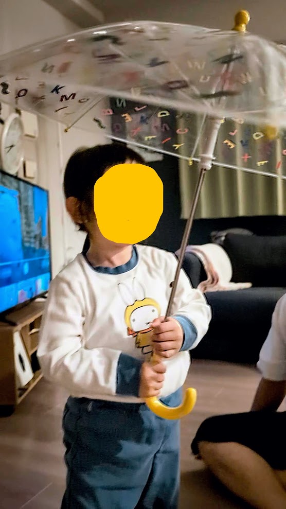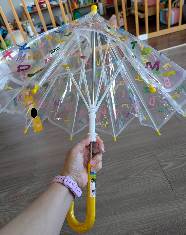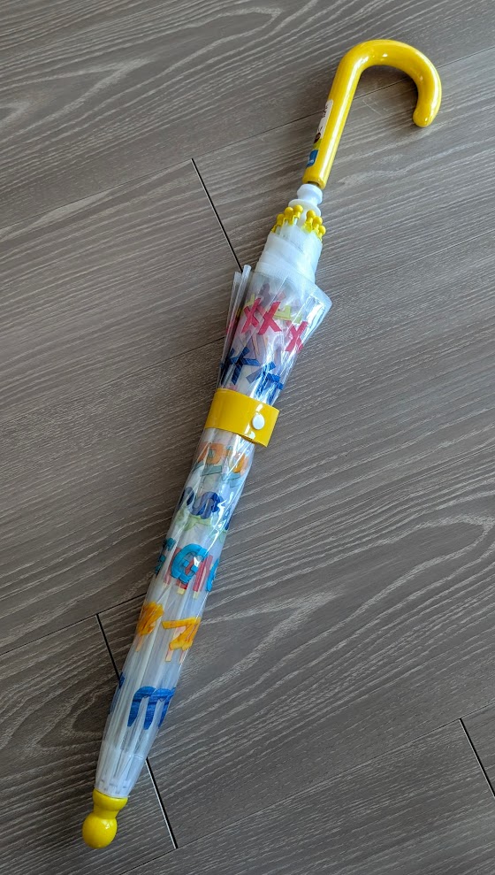 傘をさして視界が狭くなるのが危ないので、あえての周りがよく見えるビニール傘にしました。