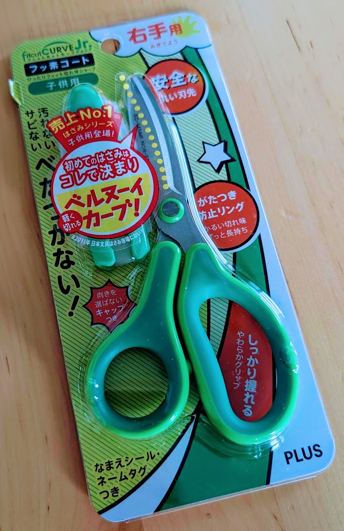とてもお手頃価格で売っていたこと、子どもがその時にハマっていた色の緑であること、ファーストシザーにはちょうどよいというレビューがあったことなどから、こちらにしました。