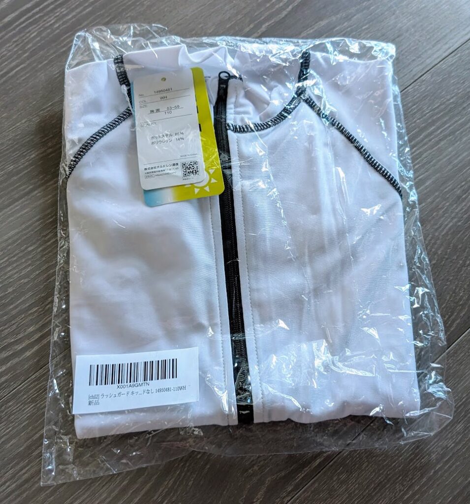 実は、沖縄瀬底旅行を計画していまして、我が子のラッシュガードのサイズをチェックしました。