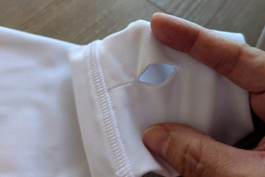 フードはないものにしたので、首周りが少し長めで日焼け対策がされたものになっています。