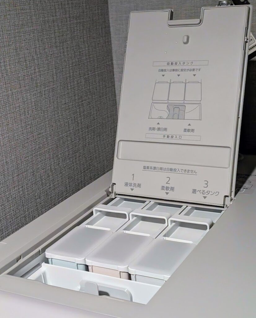 洗剤を入れる場所は上部についているのですが、前のより少し背が高い上にいれる場所も細めなので、こぼしてしまうと面倒です。