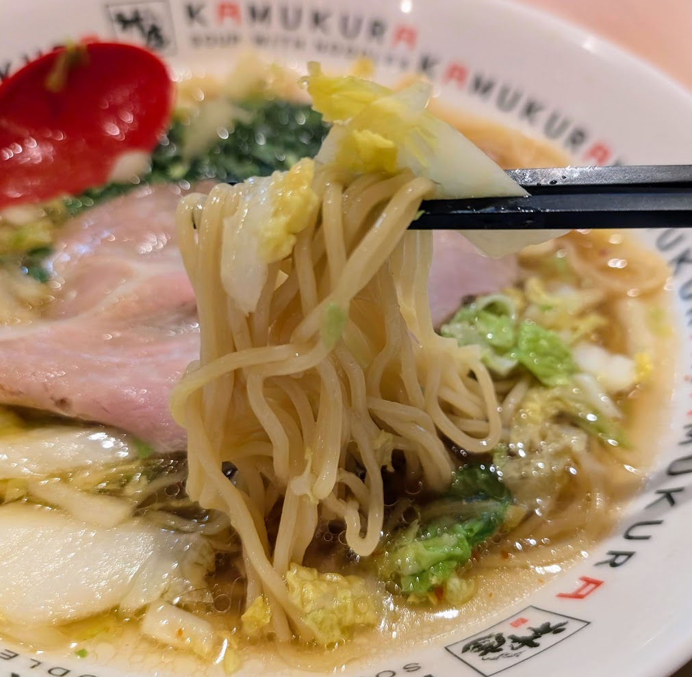 麺は細めでスープとよくからんで美味しいです。