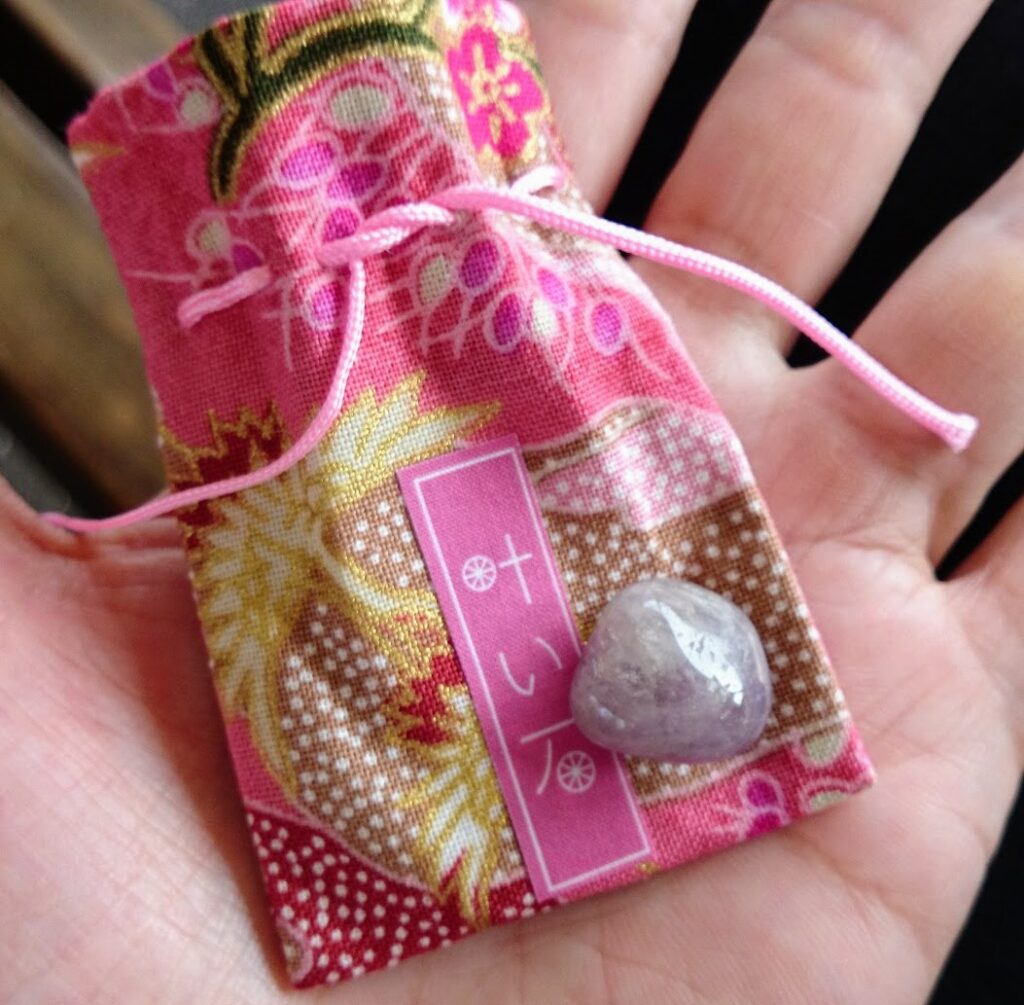 願い事を書いて、願い石に叶い石をくっつけてお願いをしました。