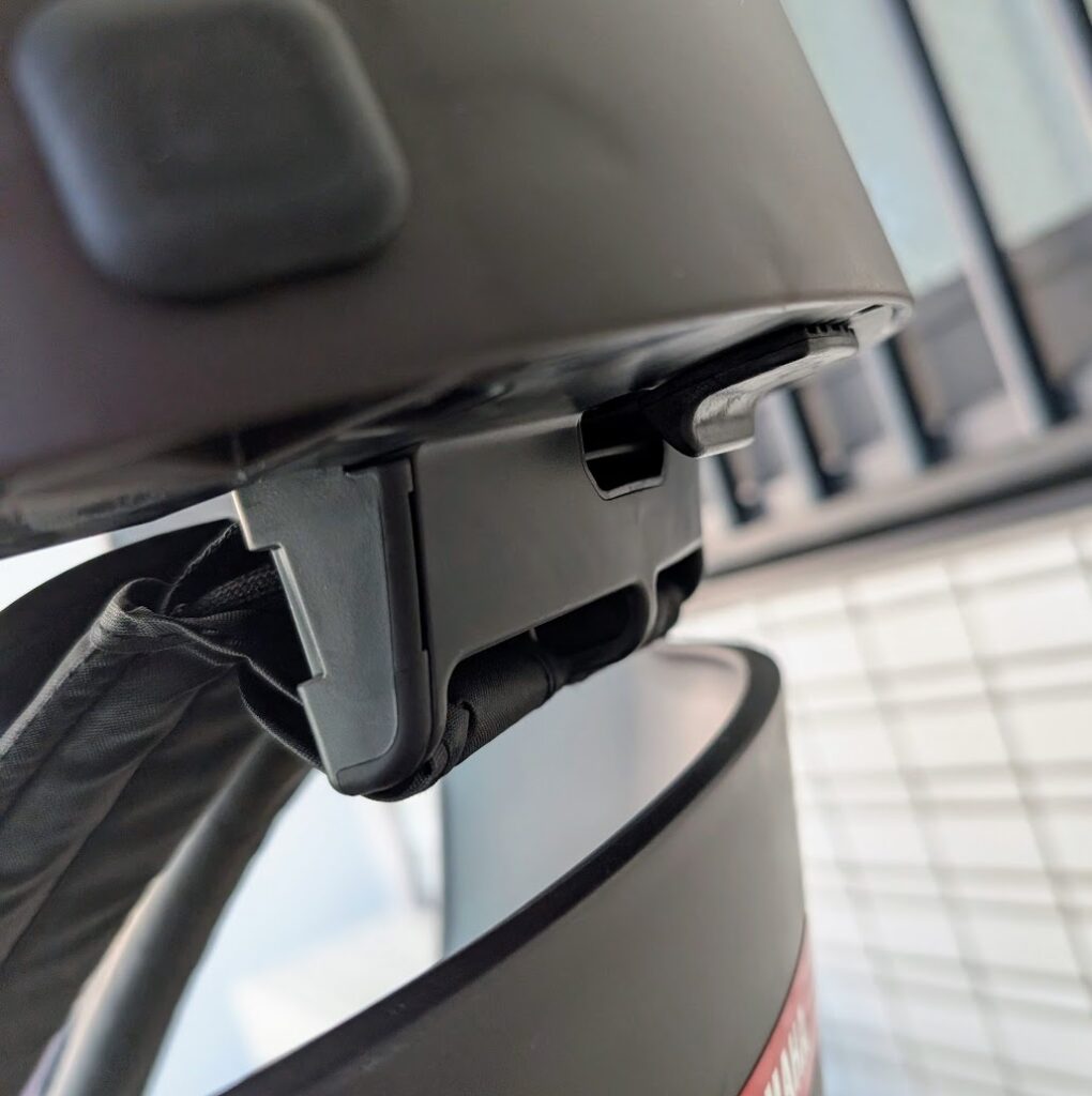 この後ろのひっかかりを押しながらベルトを引っ張ると長さが調整可能です。
