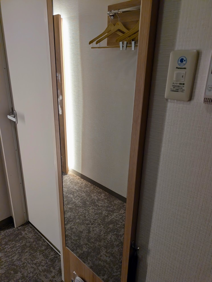 入口に姿鏡。お出かけする時にチェックできていいですね。