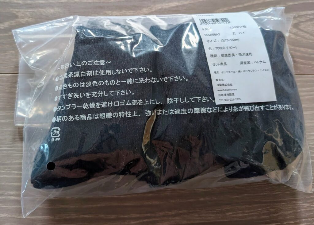 まずは紺のスクールソックス。サイズは13cm~15cmのものを購入しました。