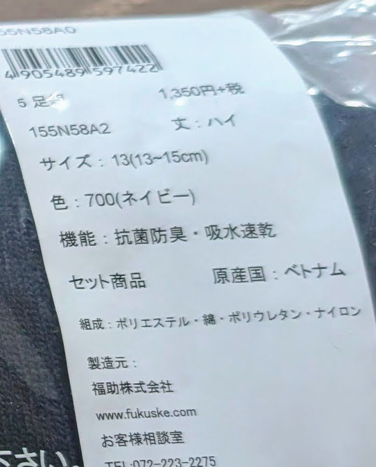 靴下の「福助」のスクールソックス5足組を購入