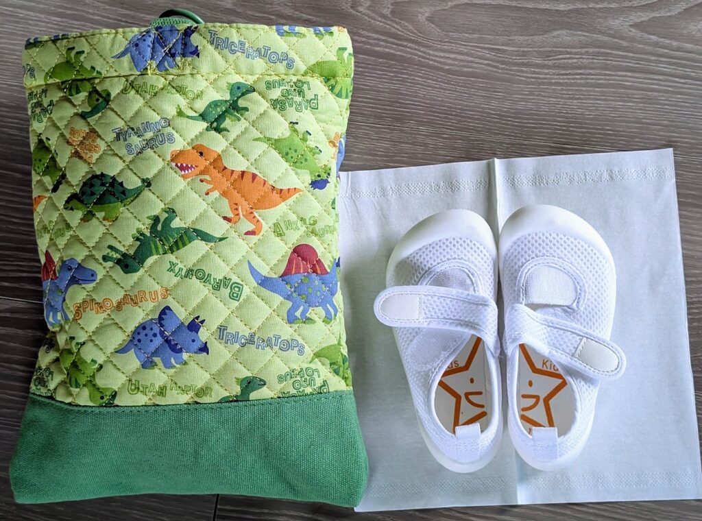 幼稚園では、上履きで過ごすのですが、上履きを入れるシューズバッグを用意するように言われたので、買ってみました。